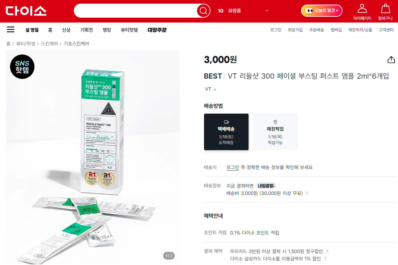 <다이소 앰플> SNS 핫템으로 알려진 VT 리들샷 300 페이셜 부스팅 퍼스트 앰플