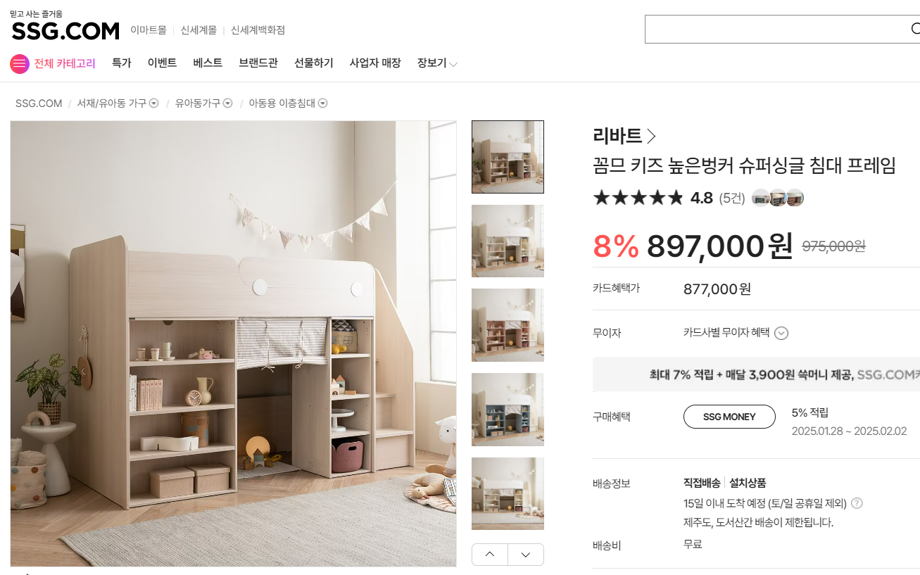 B . 리바트 꼼므 키즈 높은 벙커 슈퍼싱글 침대