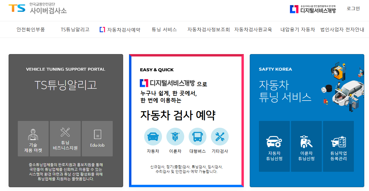 - 교통안전공단 자동차검사 예약 시스템 이용