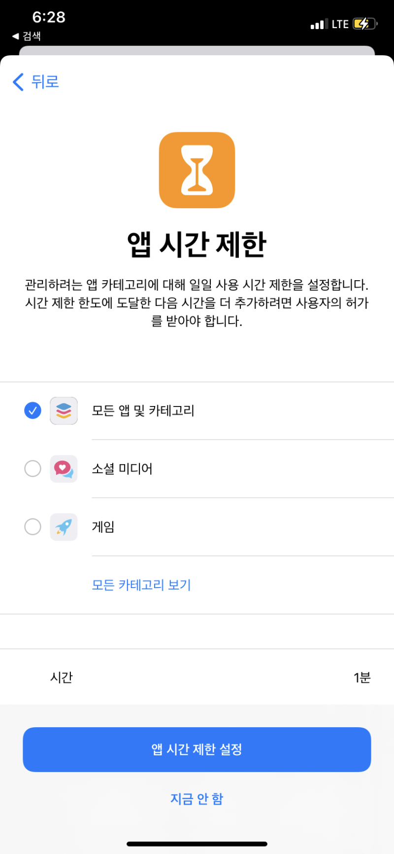 이제 각 앱별로 시간 제한을 관리하는 방법을 살펴보겠습니다. 예를 들어, 게임 앱에는 하루 1시간의 제한을 두고, 소셜 미디어 앱에는 30분의 제한을 설정할 수 있습니다. 이를 통해 자녀가 어떤 앱을 얼마나 사용하는지 모니터링하고, 필요에 따라 시간을 조정해 줄 수 있습니다. 아래의 화면을 통해 설정된 앱 사용 제한을 확인할 수 있습니다.