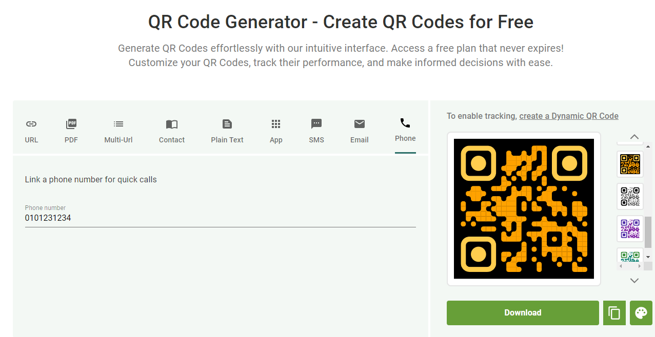 Free online static and dynamic QR Code generator. Create QR Code for URL, text, image, etc., customize with a logo, and download in high quality.